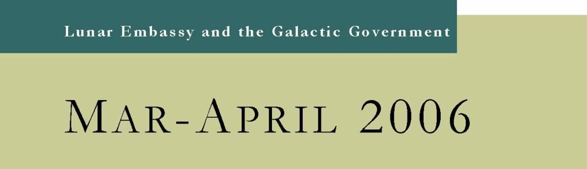 Now, on November 22, 2006 we will have been in business for the last twenty-six years. The results of all of your support has allowed the Lunar Embassy to create a new constitutionally recognized government, 4 million property owners/ citizens in 183 countries on Earth, and the desire to create a colony on the Moon of Earth, and diplomatic relations with 27 countries to date. The efforts of the Lunar Embassy and all of you have made this growth possible. I am asked all the time in interviews from the press, what my secret for success is? My response is always the same. Without a desire from human beings on this planet to want to own land on other planets, we would not be in business. So, I would like to take the first part of this letter to invite all of you to contact us with your stories of interest about this journey we are on together so that we would be able to share them in our newsletters. If you have a unique story, send it to; theheadchees@lunarembassy.com, and I will make sure we will include the story in one of our future newsletters.